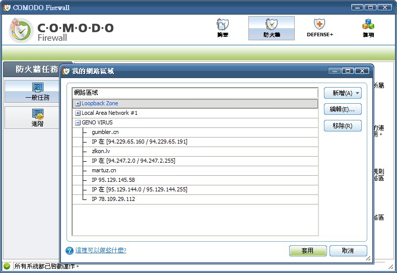 這裡我只針對日文WIKI在針對GENO病毒時,如何在COMODO防火牆設置遮蔽IP設定來防制GENO病毒做圖文說明:
